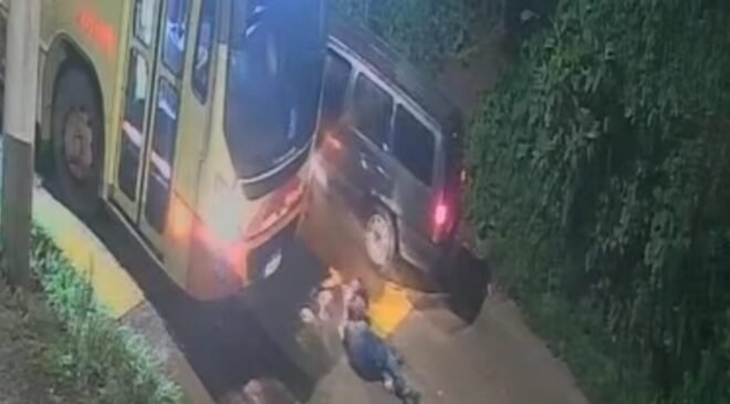 Motociclista sofre fratura exposta após acidente com carro e ônibus...