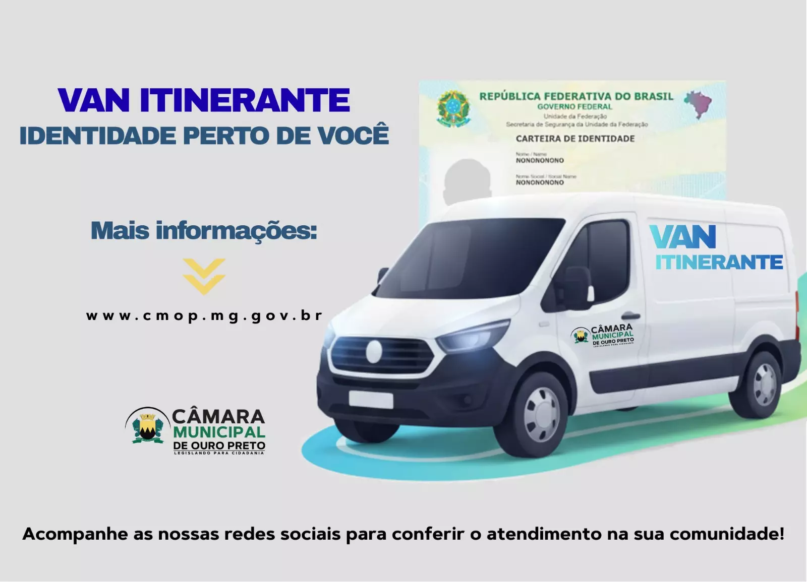 O projeto “Van Itinerante”, promovido pela Câmara Municipal de Ouro Preto, já emitiu 110 carteiras de identidade em Motta, Serra dos Cardosos, Chapada de Santa Rita, Riacho, Bocaina e Bandeiras. A van ainda atenderá três comunidades neste ano. Na próxima sexta-feira (5), a Van Itinerante estará em Coelhos (Amarantina) para receber o programa no Posto de Saúde a partir das 9h. Em seguida, em Serra de Siqueira (Cachoeira do Campo), no dia 9 de dezembro (terça-feira) também no Posto de Saúde; e Piedade (Santa Rita de Ouro Preto), em 12 de dezembro…