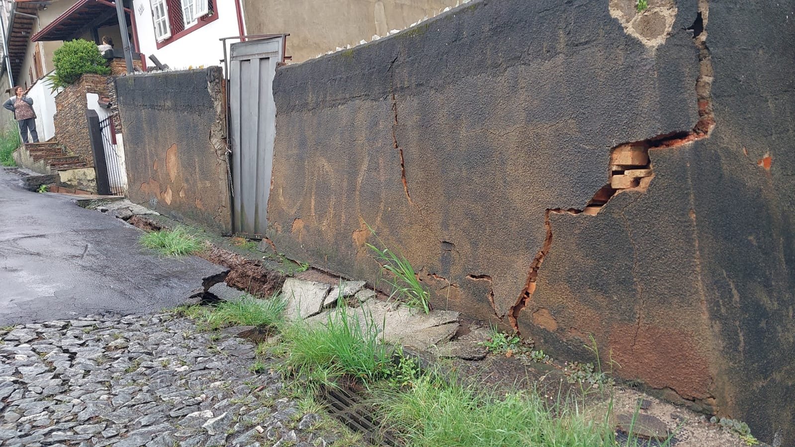 Queda de muro interdita rua e muda rotas de ônibus em Ouro Preto
