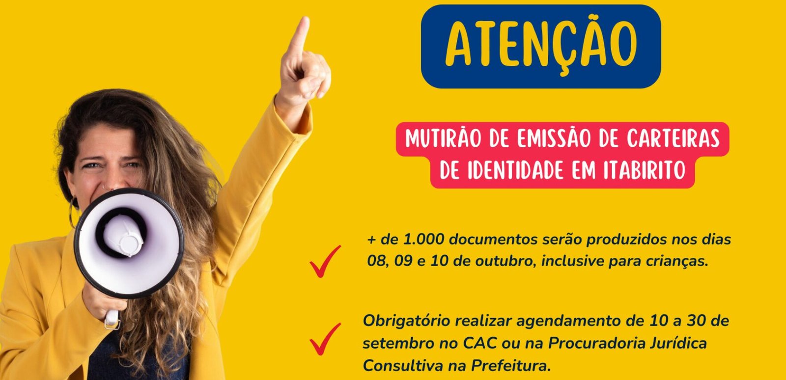 A Câmara Municipal de Itabirito divulgou que o agendamento para o mutirão de emissão de carteiras de identidade começa hoje (10). O mutirão acontecerá nos dias 08, 09 e 10 de outubro, das 8h às 17h.