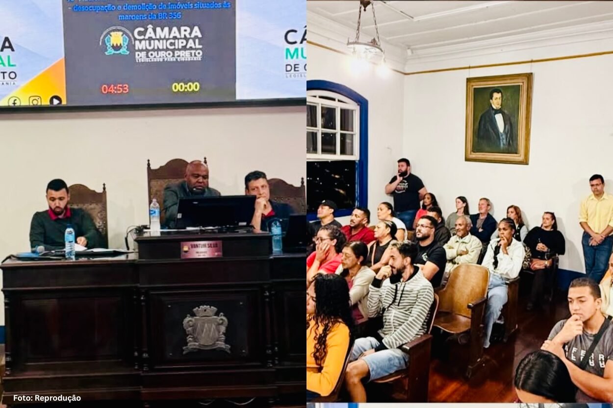 A Câmara Municipal de Ouro Preto realizou, nesta quarta-feira (22), uma audiência pública para discutir a desapropriação de residências em comunidades localizadas às margens da BR-356, tema que tem gerado preocupação entre moradores do município. O debate foi motivado por determinações judiciais relacionadas à reintegração de posse em áreas consideradas faixa de domínio da rodovia, sob responsabilidade do Departamento Nacional de Infraestrutura de Transportes (DNIT).