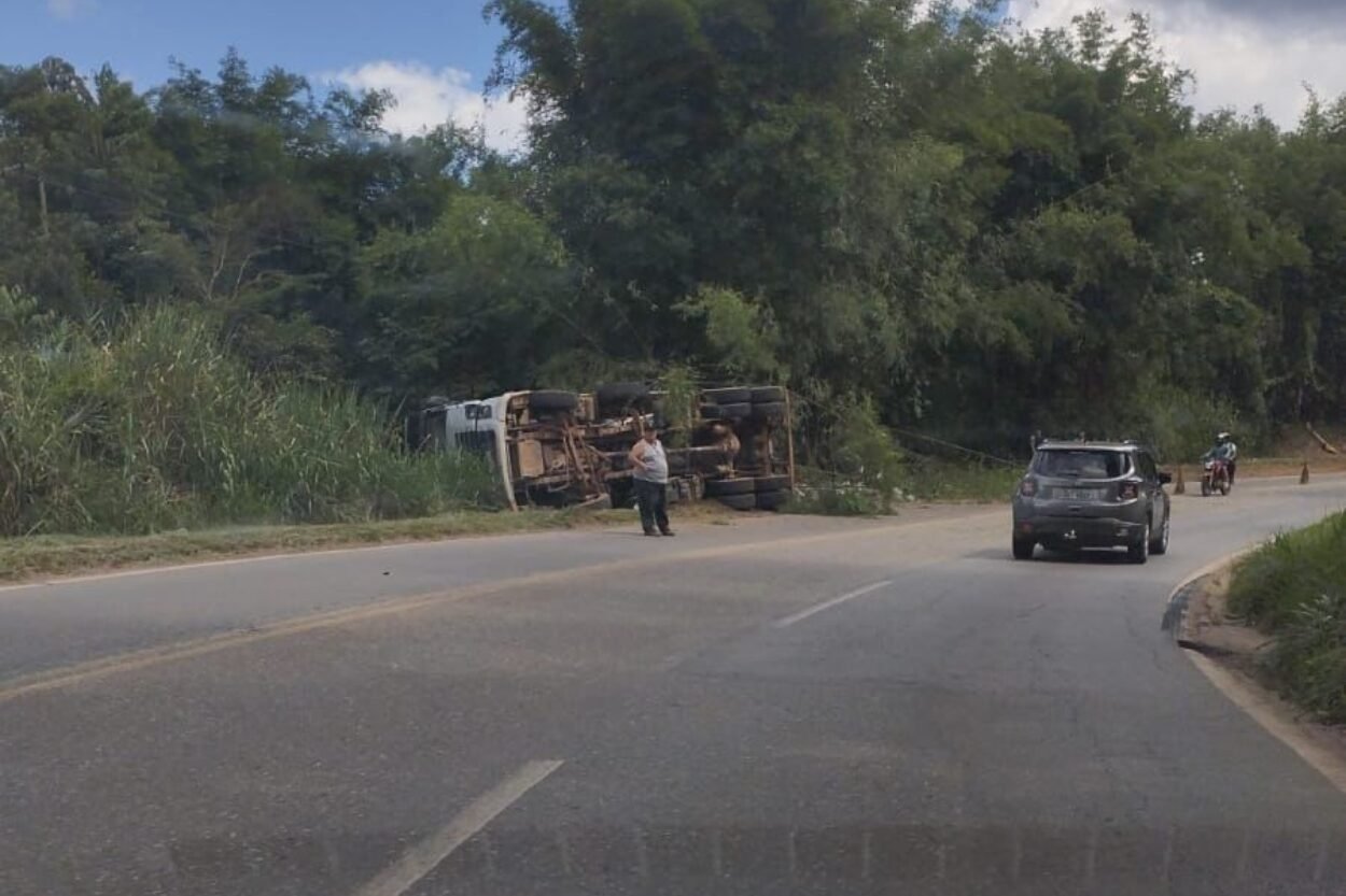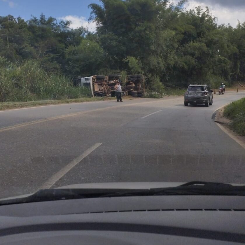 Na tarde desta segunda-feira, um caminhão tombou na entrada de Mariana. De acordo com informações de pessoas que passavam pela via, o motorista perdeu o controle na altura do posto desativado.