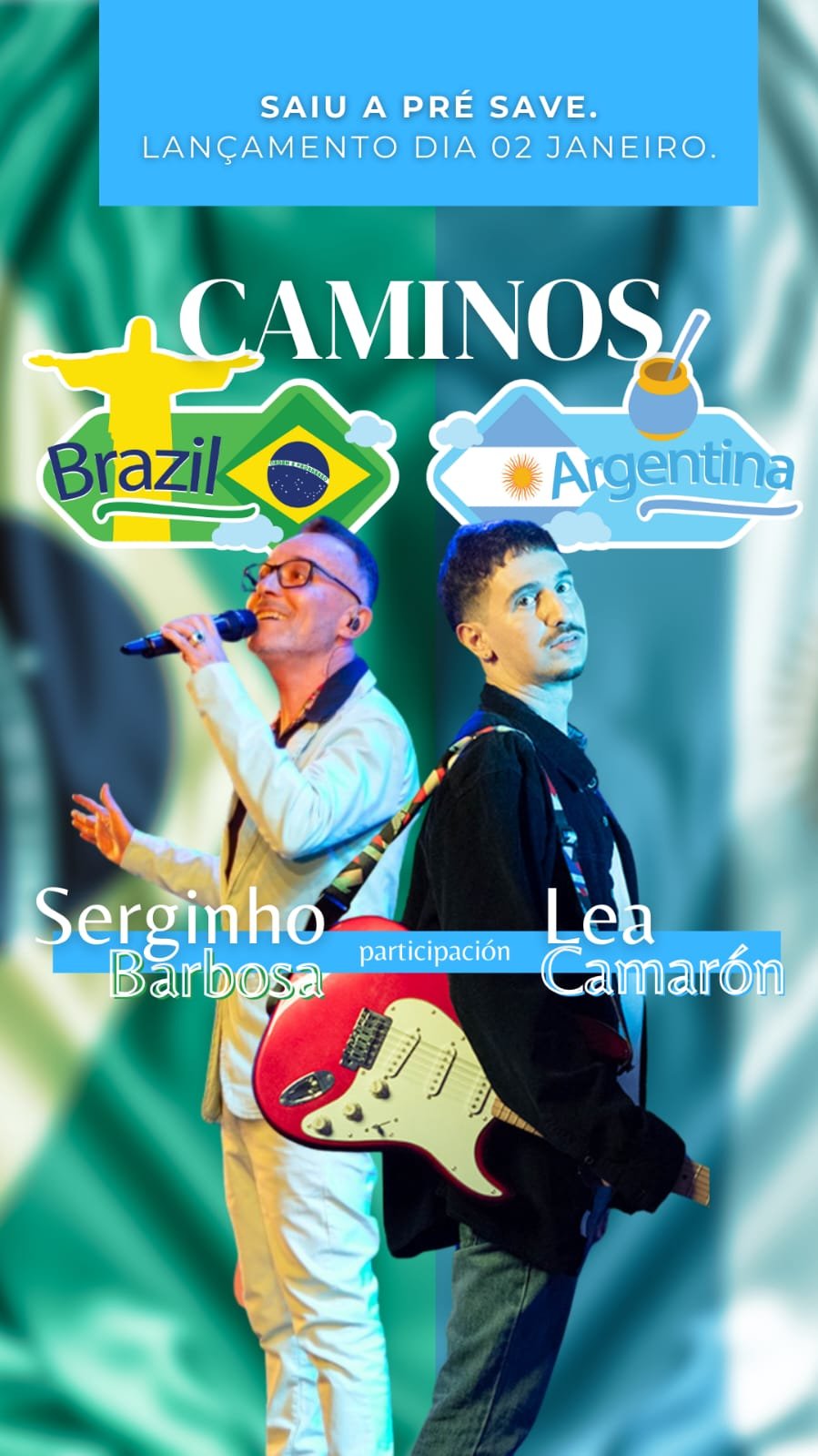 A Canção “Caminhos” do cantor e compositor Serginho Barbosa, produzida e gravada durante a pandemia, ganhará uma nova versão. Em fevereiro, a música será relançada em espanhol, com a participação especial do cantor argentino Lea Camarón.