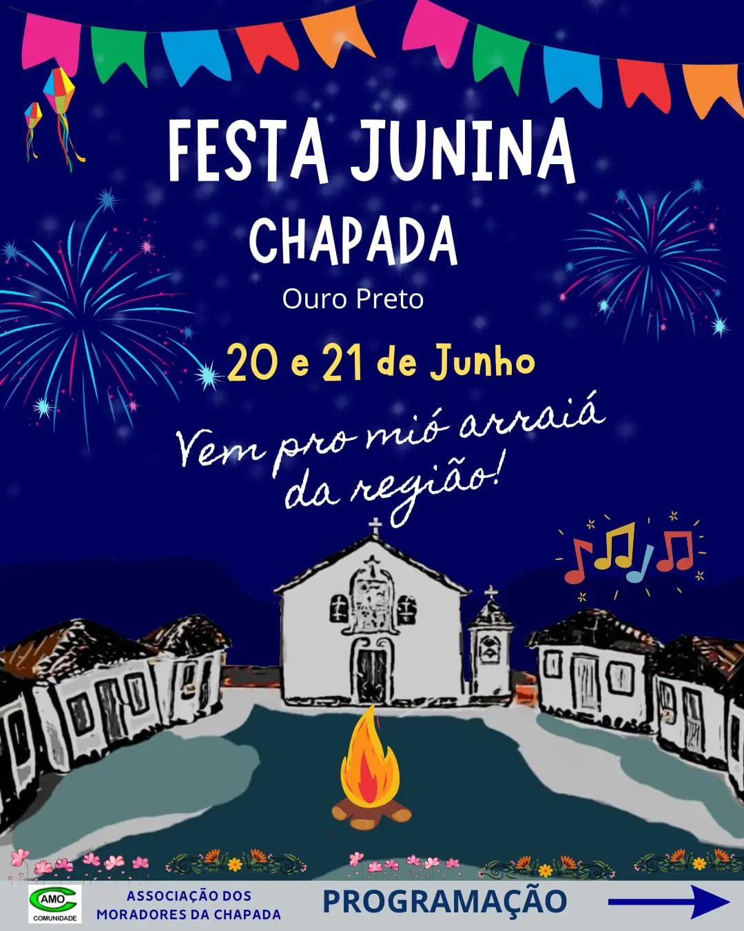 A Festa Junina da Chapada em Ouro Preto é organizada pela comunidade local e acontece na praça da Chapada. O evento mantém as tradições juninas e contribui para fortalecer o vínculo entre moradores e visitantes.