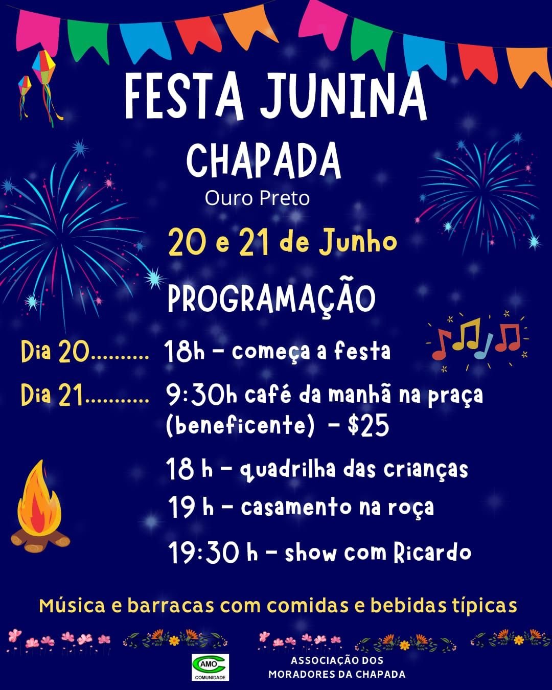 A Festa Junina da Chapada em Ouro Preto é organizada pela comunidade local e acontece na praça da Chapada. O evento mantém as tradições juninas e contribui para fortalecer o vínculo entre moradores e visitantes.
