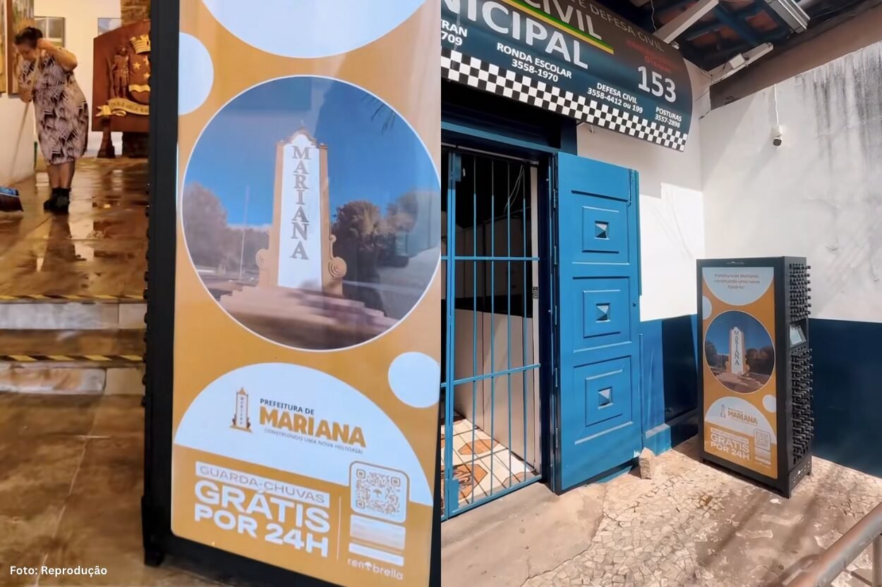 Com a chegada de janeiro e do período chuvoso, a Prefeitura de Mariana passou a disponibilizar guarda-chuvas gratuitos para a população por meio de estações automatizadas instaladas em pontos estratégicos da cidade. A iniciativa permite o uso do item por até 24 horas sem custo, oferecendo mais conforto para moradores e visitantes em dias de chuva ou sol intenso.